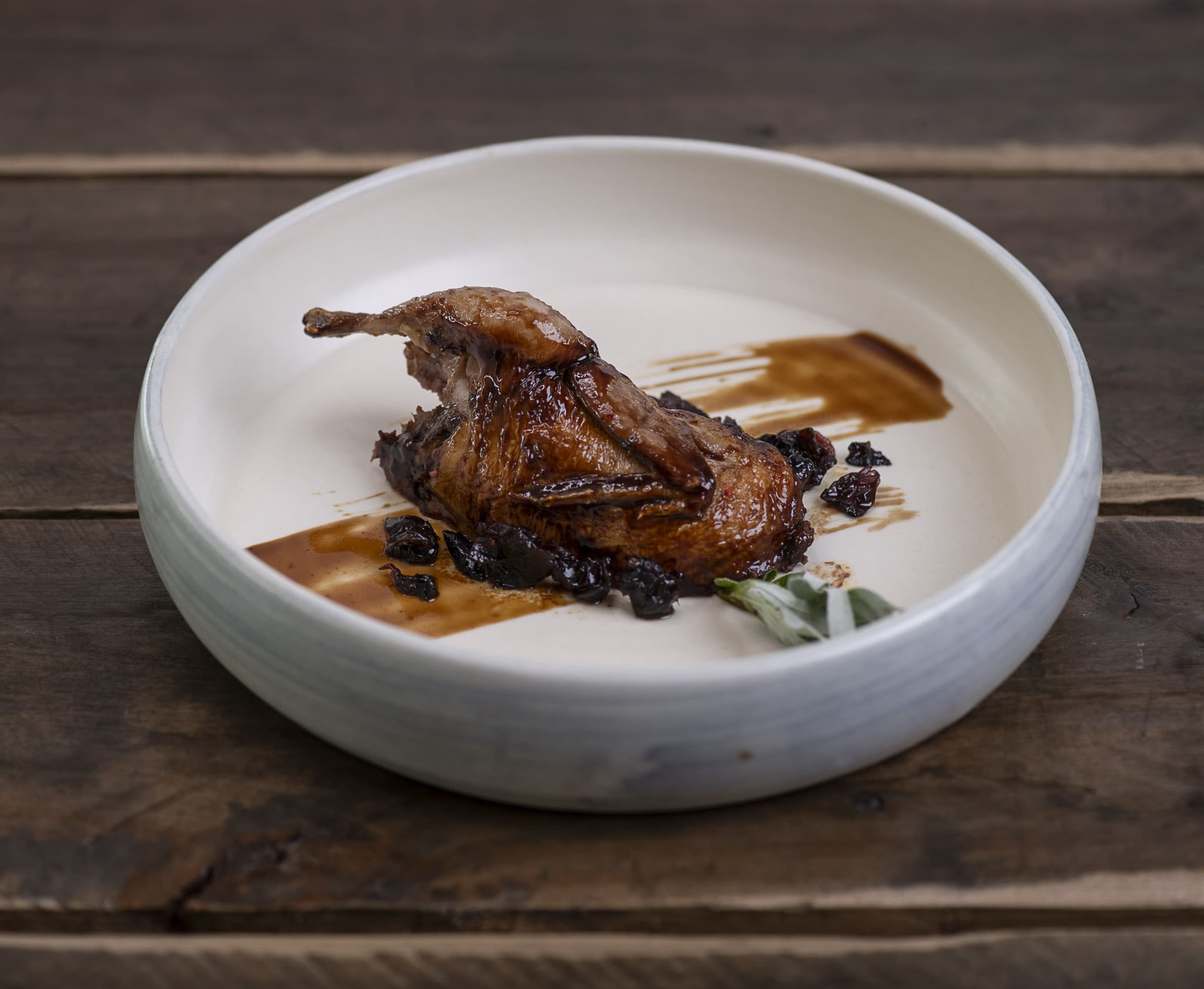 Caille jumbo élevé par la ferme Orléans, l'endroit où nous faisons abattre nos canards. Une caille désossée et farcie à la chair de canard et au foie gras vendue non-cuite.